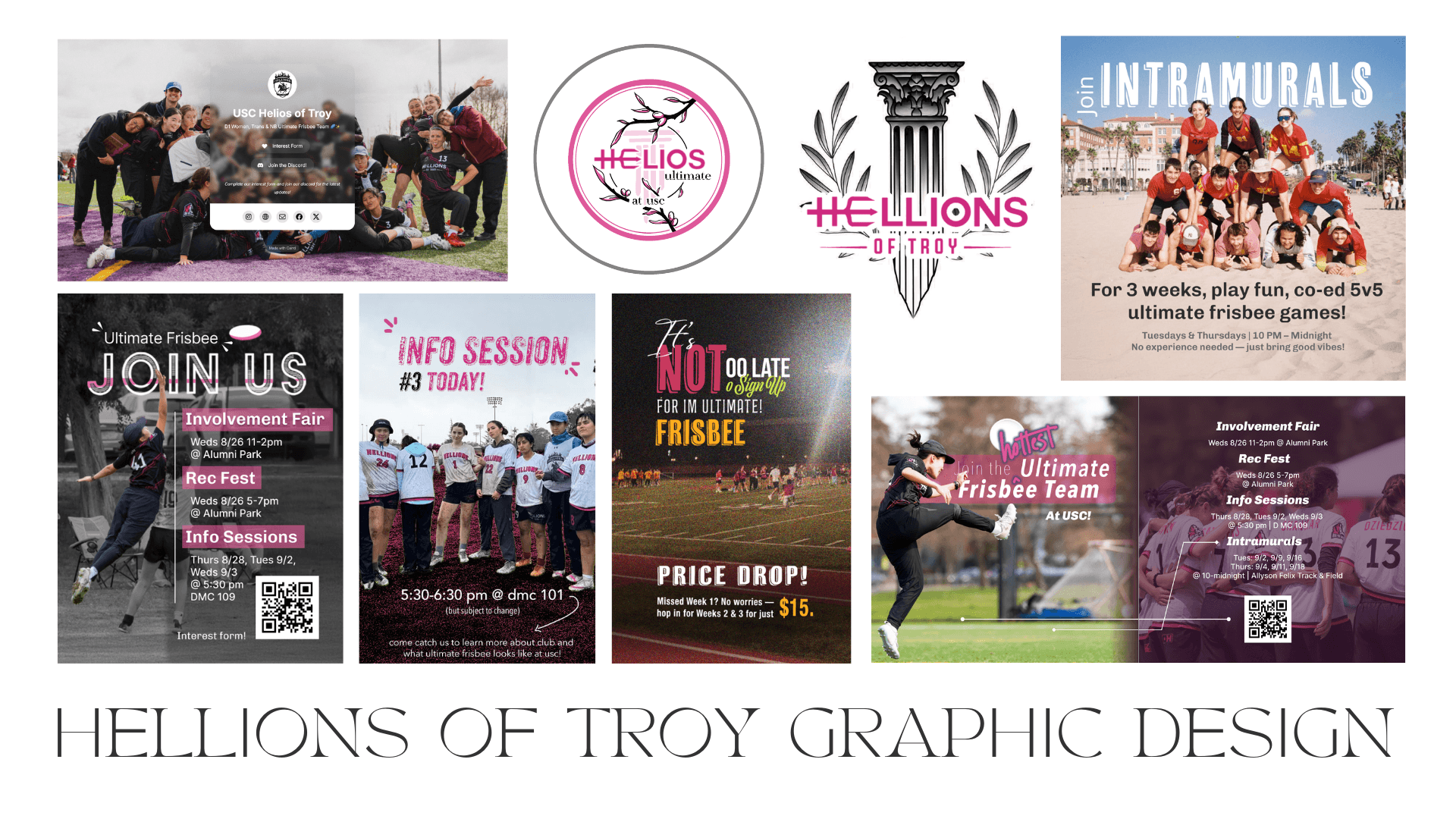 Designed graphics and media for USC Division I Women’s Ultimate Team.